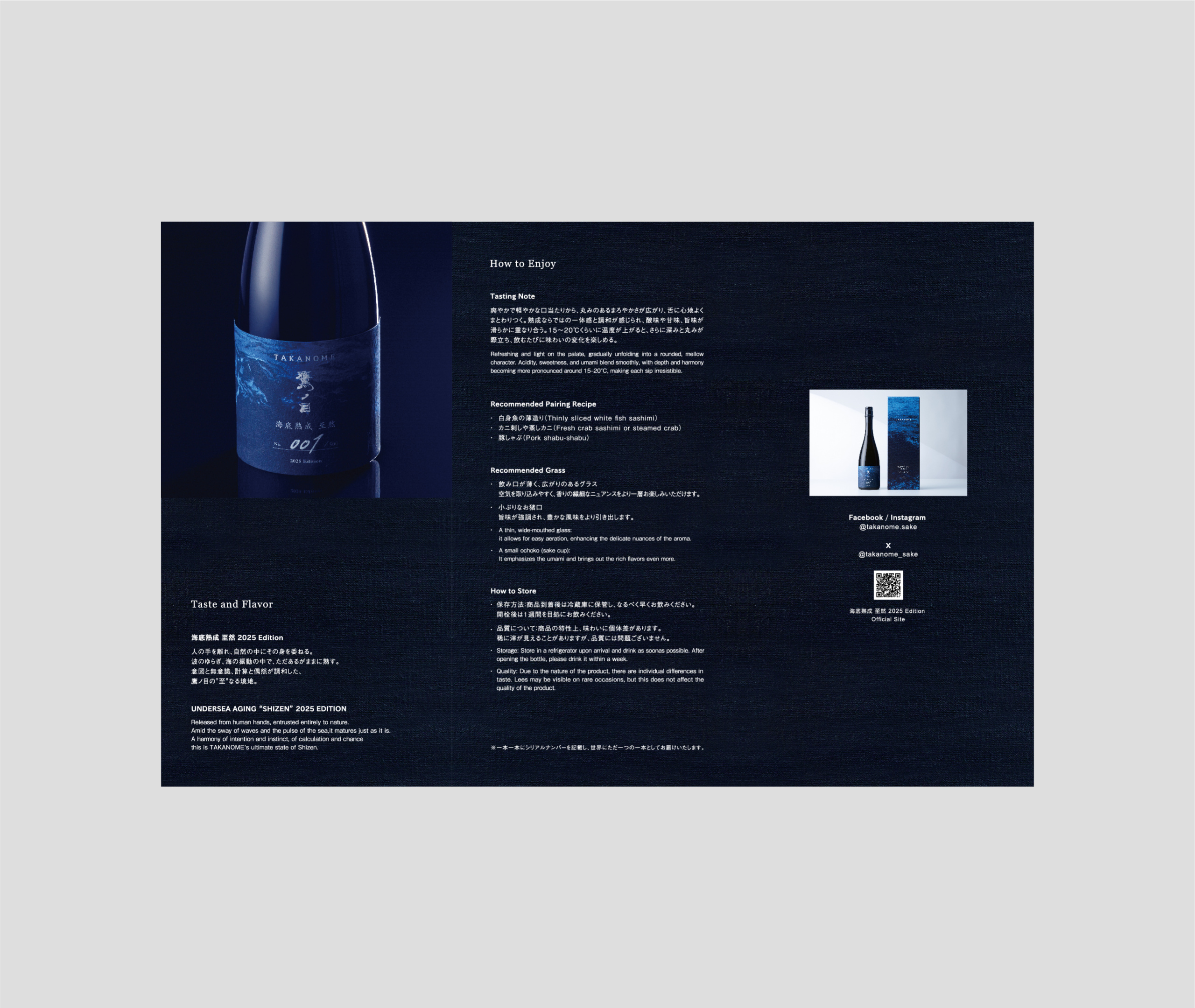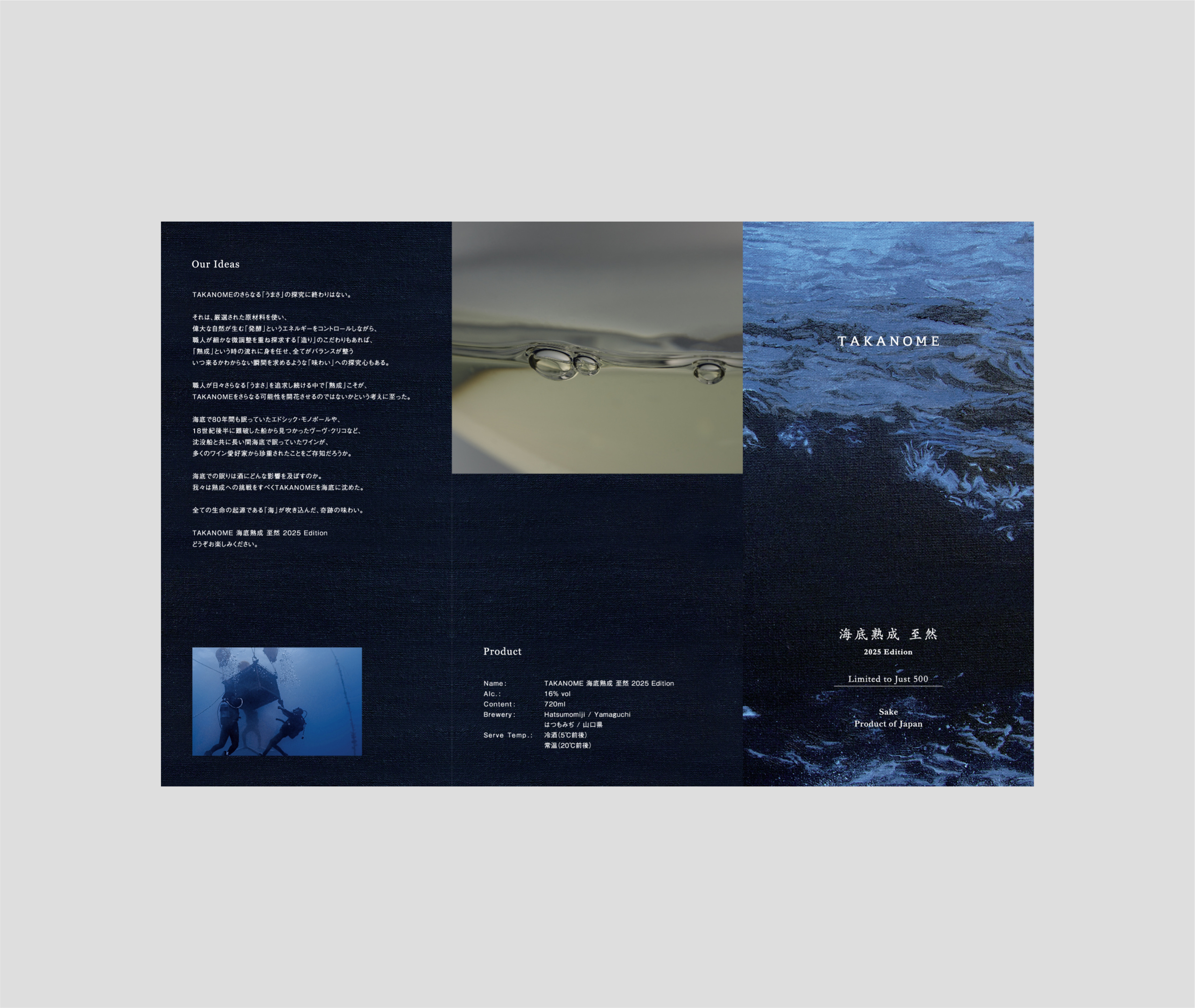 TAKANOMEの限定商品「海底熟成 至然」のパッケージ・ラベル・パンフレットを制作しました。